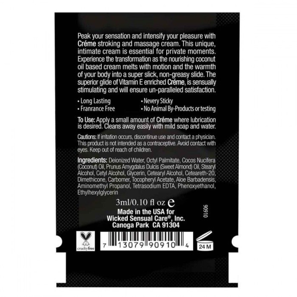 Технические характеристики Крем для массажа и мастурбации Wicked Stroking and Massage Creme - 3 мл.
