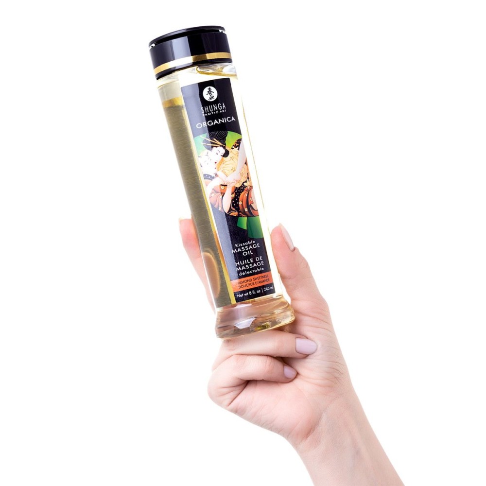 Органическое массажное масло Organica с нежным ароматом миндаля — идеальное решение для чувственного массажа. Объем 240 мл в удобном флаконе обеспечит длительное использование. Натуральный состав включает холодное прессованное подсолнечное, рапсовое, виноградное, кунжутное масла, масло авокадо, витамин Е и сертифицированный органический ароматизатор. Безопасная формула с бензиловым спиртом подходит для обоих партнеров. Канадское качество бренда и производства гарантирует мягкость и эффективность для эротического массажа, усиливая интимные моменты.