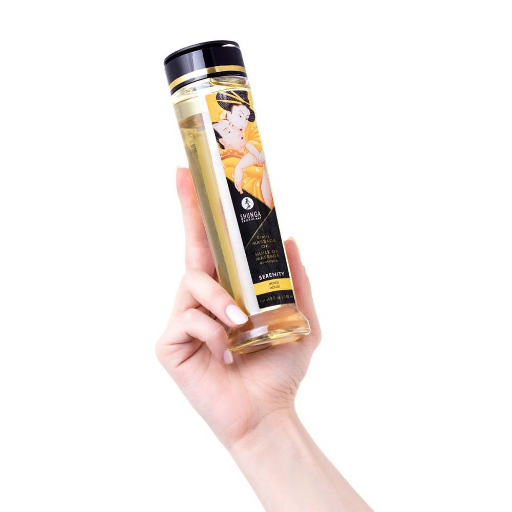 Массажное масло с ароматом моной Serenity — это премиальное средство для чувственного эротического массажа. Натуральная формула на основе масел сладкого миндаля, виноградных косточек, авокадо и сафлоры обеспечивает плавное скольжение, глубокое увлажнение и питание кожи. Обогащенное витамином Е, масло способствует регенерации и сохранению упругости кожи. Изысканный аромат моной создает расслабляющую атмосферу, усиливая интимные моменты. Подходит для пар любого пола, изготовлено в Канаде в удобном флаконе объемом 240 мл. Идеально для романтических вечеров и探索 новых ощущений вместе.