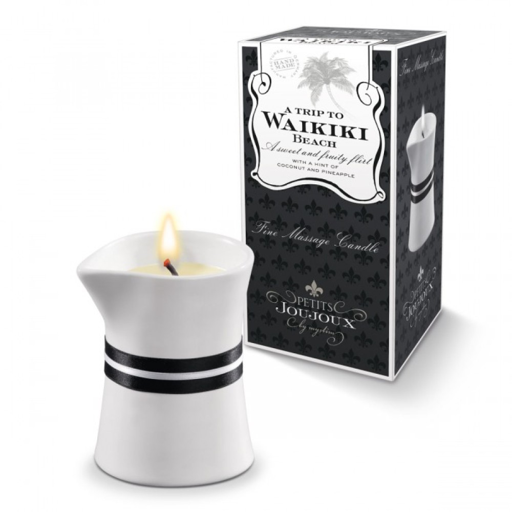 Продукт подходит для обоих партнеров, выполнен в формате компактной свечи весом 120 гр. Масло легко наносится, обладает нежной текстурой и приятным тропическим ароматом, который перенесет вас на пляжи Вайкики.