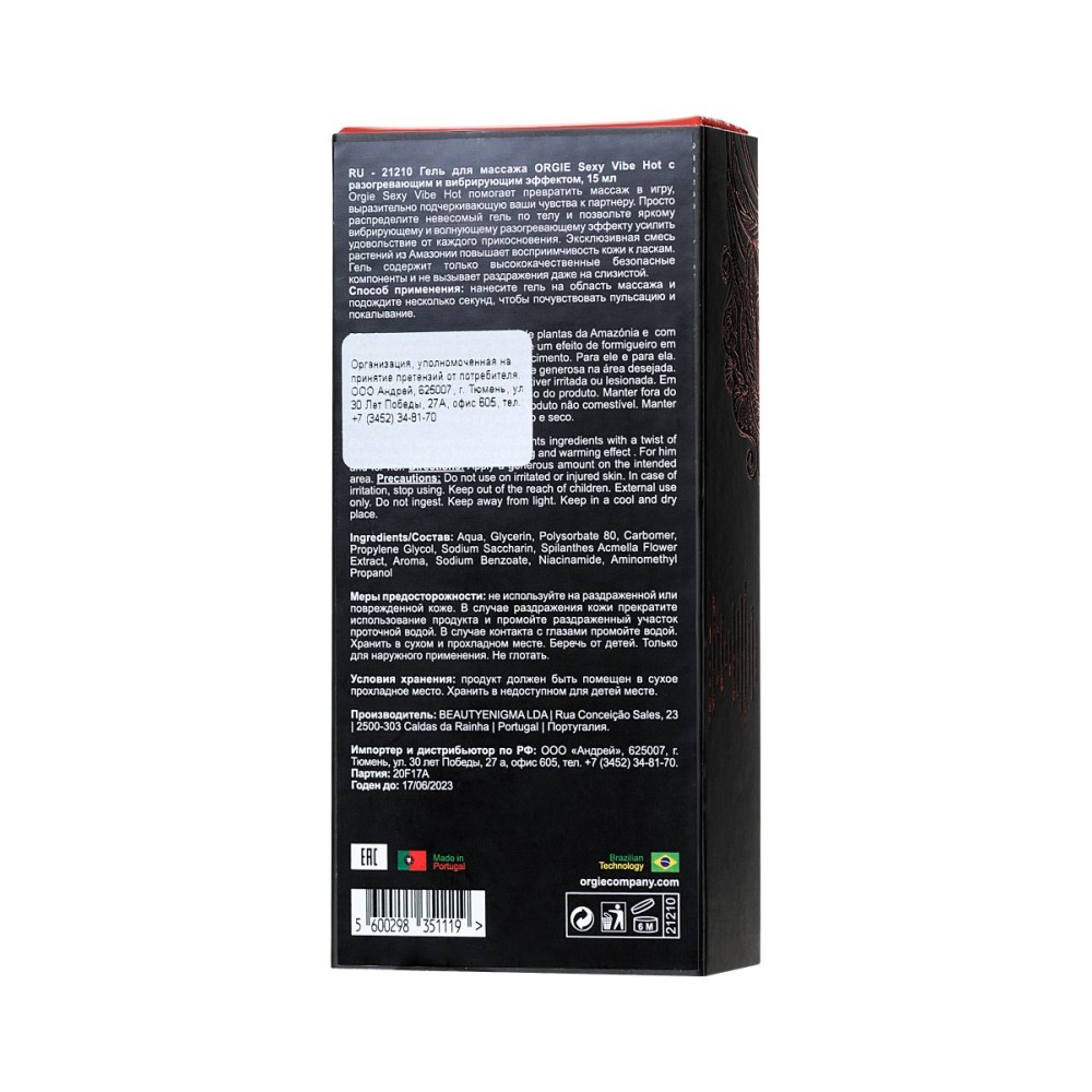 Функция эротического массажа раскрывается полностью благодаря уникальной текстуре геля, который не липнет, легко наносится и смывается. Погрузитесь в мир наслаждения с ORGIE Sexy Vibe Hot!