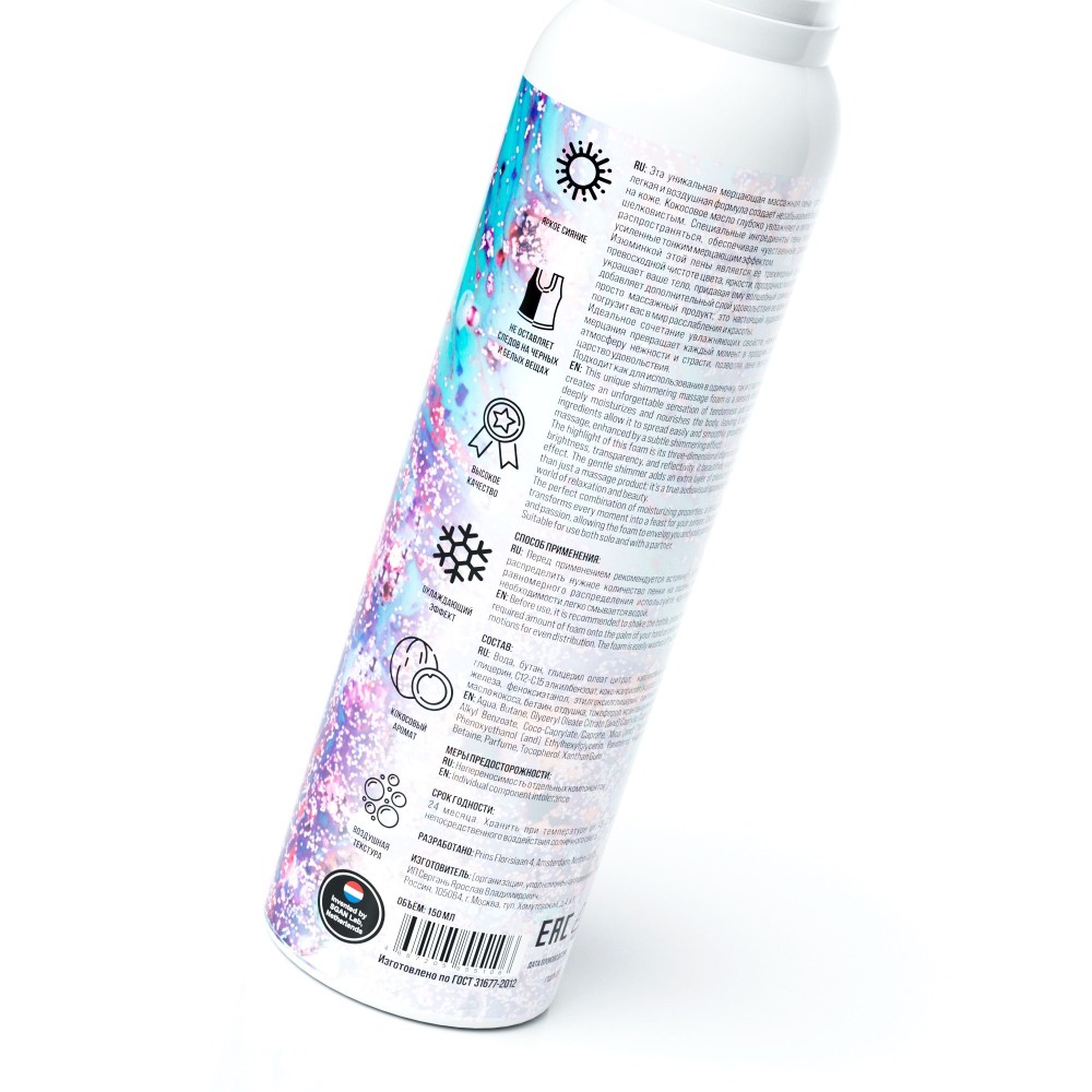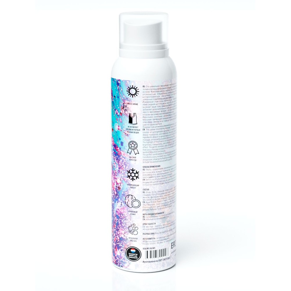 Технические характеристики Шиммер для массажа с хрустящей пенкой Passion Cloud - 150 мл.