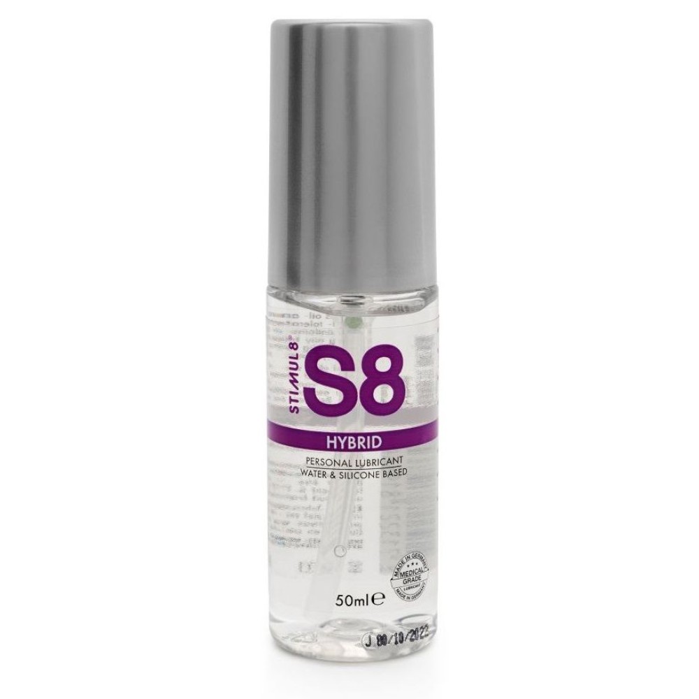 Cмазка на водно-силиконовой основе S8 Hybrid - универсальное решение для пар. Объём 50 мл в удобном флаконе. Подходит для обоих полов, обеспечивает увлажнение половых органов и комфорт при вагинальном сексе. Продукт бренда из Нидерландов, произведён в Нидерландах. Сочетает преимущества водной и силиконовой основы для длительного скольжения.