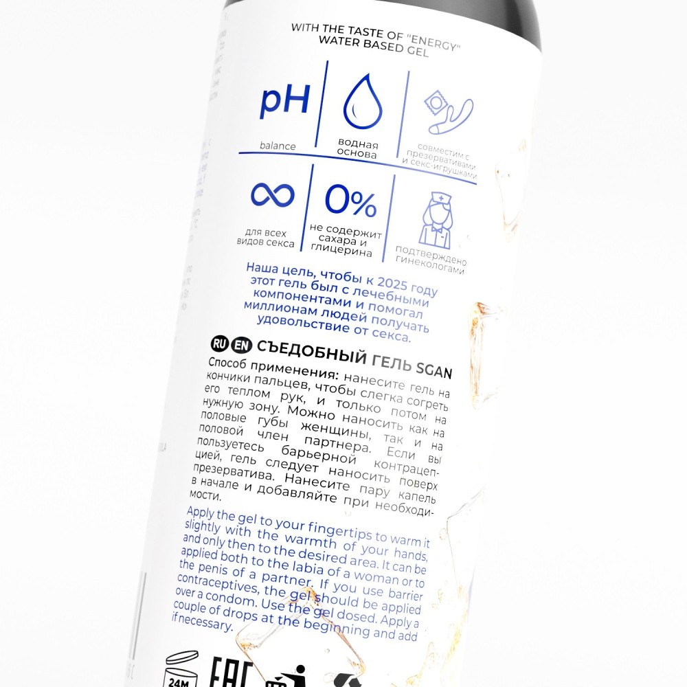 | Функциясмазка для орального секса | Доп. функцияувлажнение половых органов | СоставВода, гидроксиэтилцеллюлоза, д-пантенол, бензоат натрия, сорбат калия, экстракт ромашки, экстракт алоэ, лимонная кислота, натуральный ароматизатор Энергетика, натуральный подсластитель (сукралоза). |