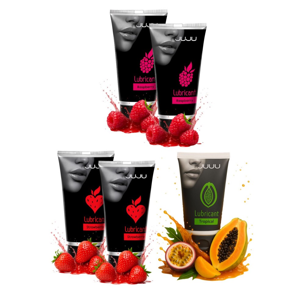 Набор из 5 съедобных лубрикантов JUJU (клубника х 2, малина х 2, тропические фрукты)