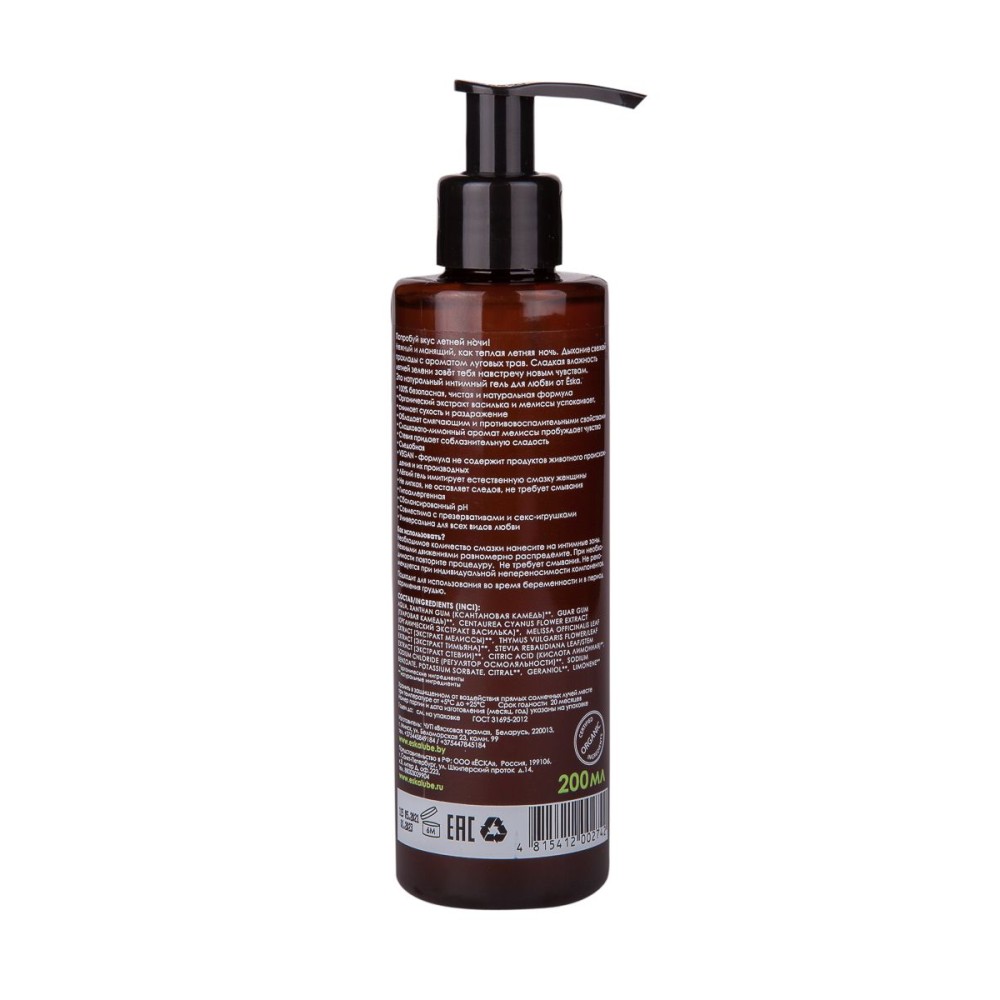 Технические характеристики Натуральный лубрикант на водной основе Ёska Летняя ночь - 200 мл.