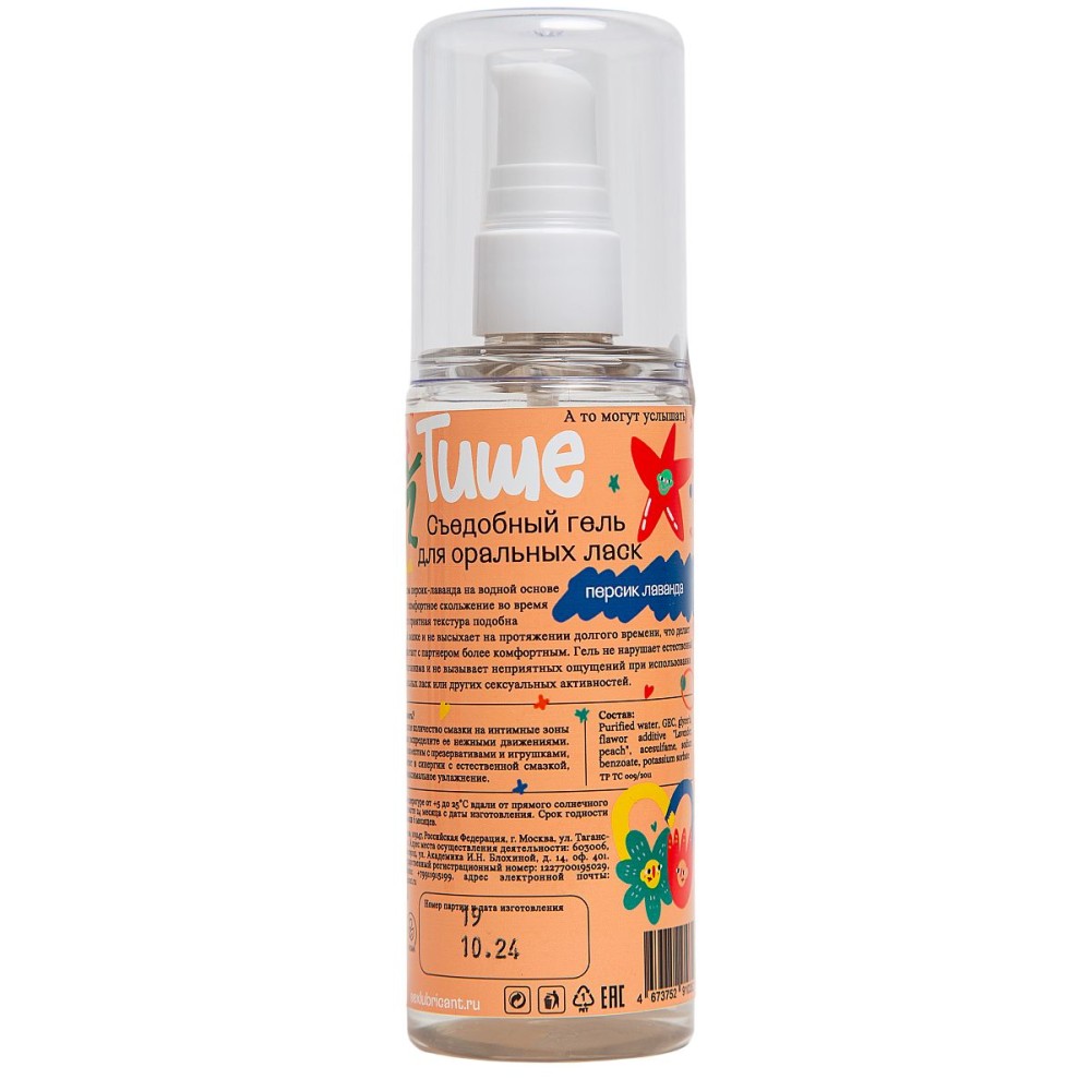 Идеально подходит как для вагинального, так и для орального секса, создавая гладкое скольжение и усиливая чувственность. Натуральный состав на основе очищенной воды и глицерина безопасен для слизистых, а приятный вкус и аромат персика с лавандой делают интимные моменты особенно страстными.