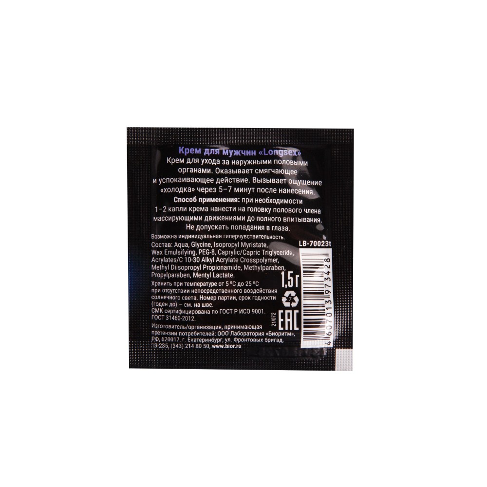 Крем в индивидуальном саше содержит 1,5 гр средства, что достаточно для одного применения. Нанесите небольшое количество крема (1-2 капли) на головку полового члена за 5-7 минут до начала интимной близости и дождитесь полного впитывания. Дозировка подбирается индивидуально для достижения оптимального эффекта.