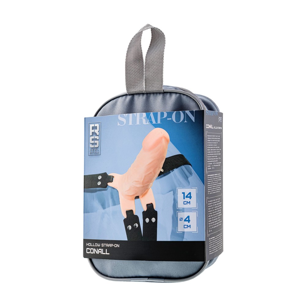 Фаллопротез (полый страпон) RealStick Strap-On Conall - пустотелая насадка, внешне напоминающая классический страпон, внутри — специальная полость для члена. Упругая насадка из безопасного материала TPE подходит для вагинального и анального секса – даже при полной эректильной дисфункции насадка не будет сгибаться. Гладкая головка розового оттенка имеет немного заостренную форму, что делает ввод более комфортным. Ярко выраженные вены по поверхности и естественный цвет добавляют фаллоимитатору реалистичности. Стропы из двухслойной экокожи с фастексом (быстросъемной пряжкой) и регуляторами натяжения обеспечивают быструю и плотную посадку. Пояс с внутренней стороны покрыт влагопоглощающим бархатом. Хольнитены (круглые заклепки) выполнены из нержавеющей стали или латуни. С внутренней стороны хольнитены покрыты защитным слоем, чтобы не вызывать аллергии при соприкосновении с кожей. Насадка несъемная. В комплекте тканевая косметичка с прозрачным окном – обеспечивает удобство при хранении. Рабочая длина - 14 см.