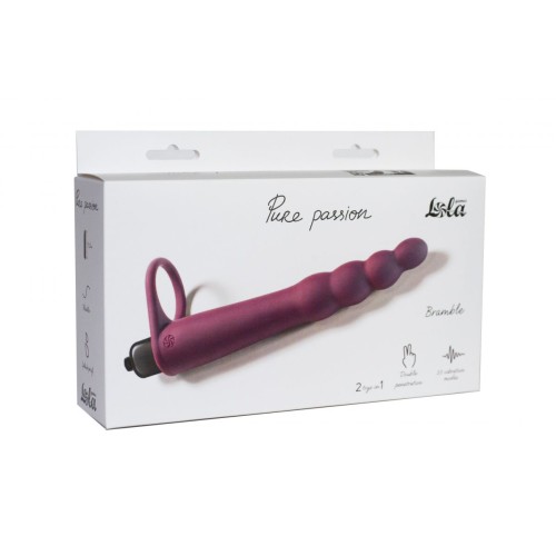 Насадка для двойного проникновения Bramble из гипоаллергенного силикона. Обладает рельефной и гибкой формой. Надежно крепится на основание пениса благодаря силиконовому кольцу. Кольцо хорошо тянется и подходит на любой размер. Дополнительная стимуляция осуществляется благодаря вибропуле с 10 скоростями, которая легко извлекается из силиконовой насадки и может использоваться отдельно. Рабочая длина - 16 см.