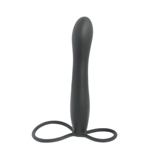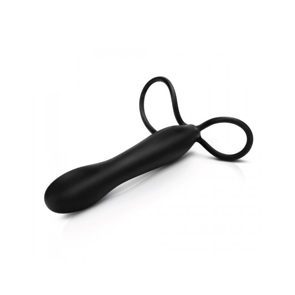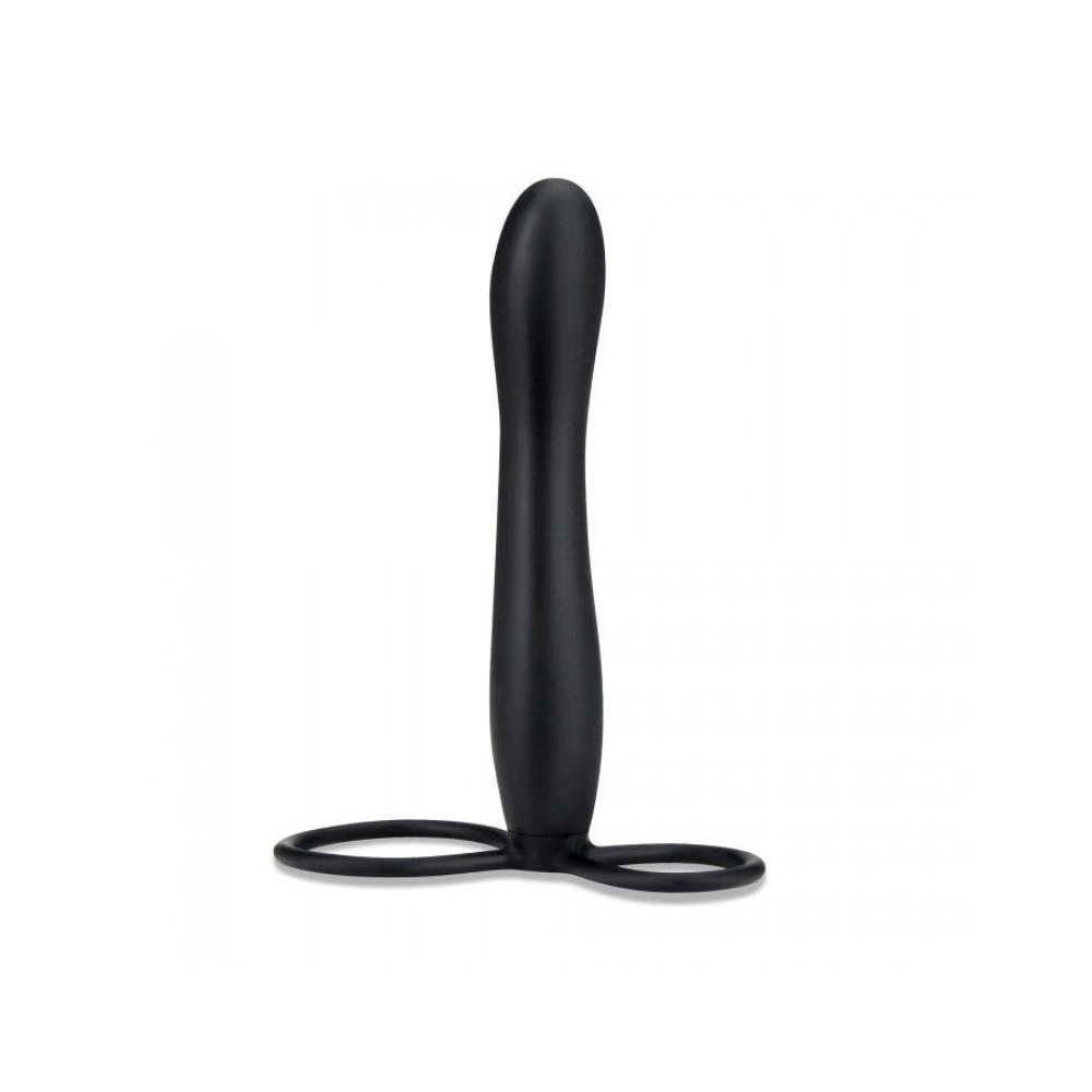 Черный страпон с подхватом мошонки. Насадка страпона подходит для вагинального и анального секса. Рекомендуется использовать со смазкой. Диаметр петель - 3 и 5 см.