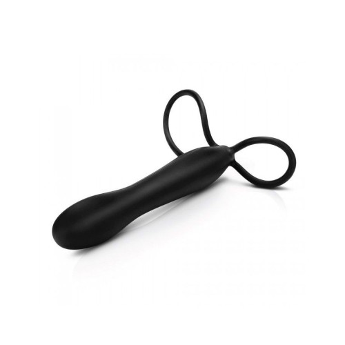 Черная насадка на пенис для двойной стимуляции Mojo BlackJack - 15 см.