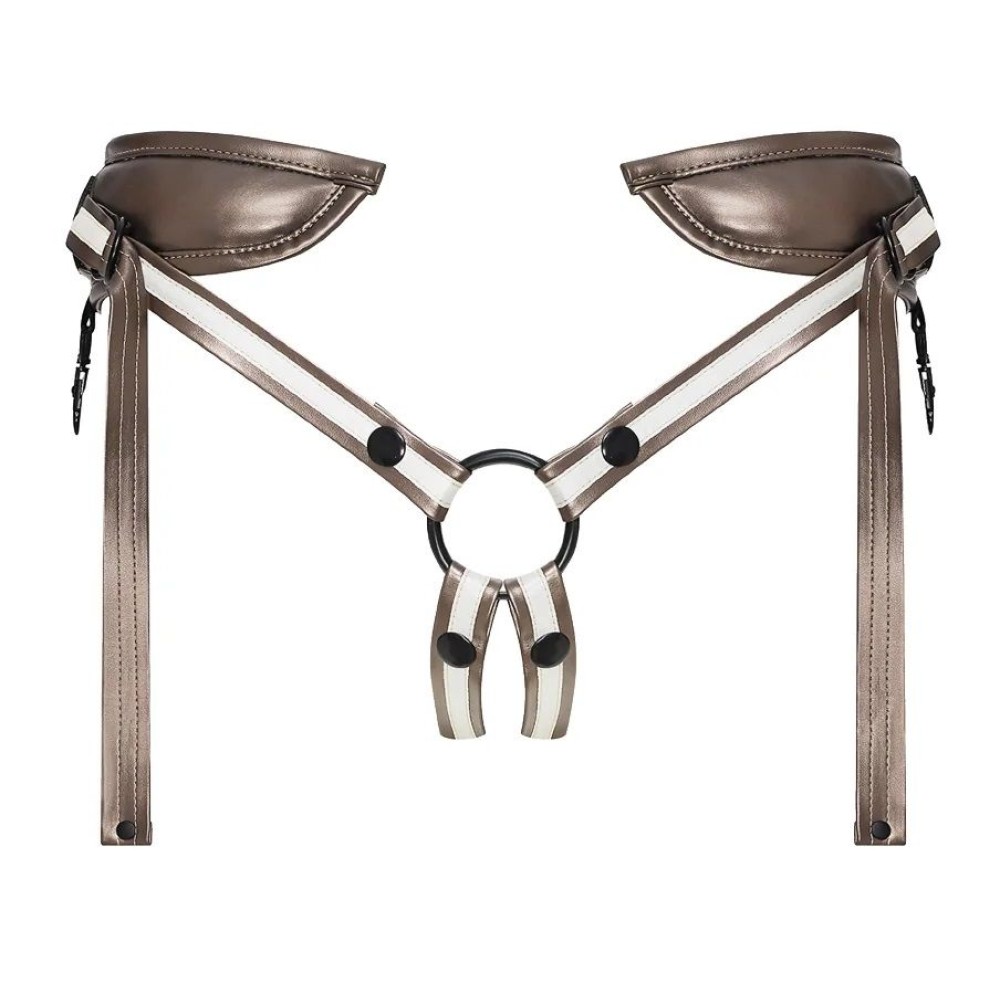 Бронзовый пояс для насадок Desirous Harness — элегантное решение для пар, стремящихся к новым уровням близости. Изготовленный из гипоаллергенного полиуретана, этот пояс обеспечивает комфорт и надежную фиксацию страпон-насадок. Французский дизайн подчеркивает изысканность, а универсальная конструкция подходит для использования с различными интимными аксессуарами. Картонная упаковка гарантирует дискретную доставку. Идеален для экспериментов в ролевых играх и расширения сексуального опыта.