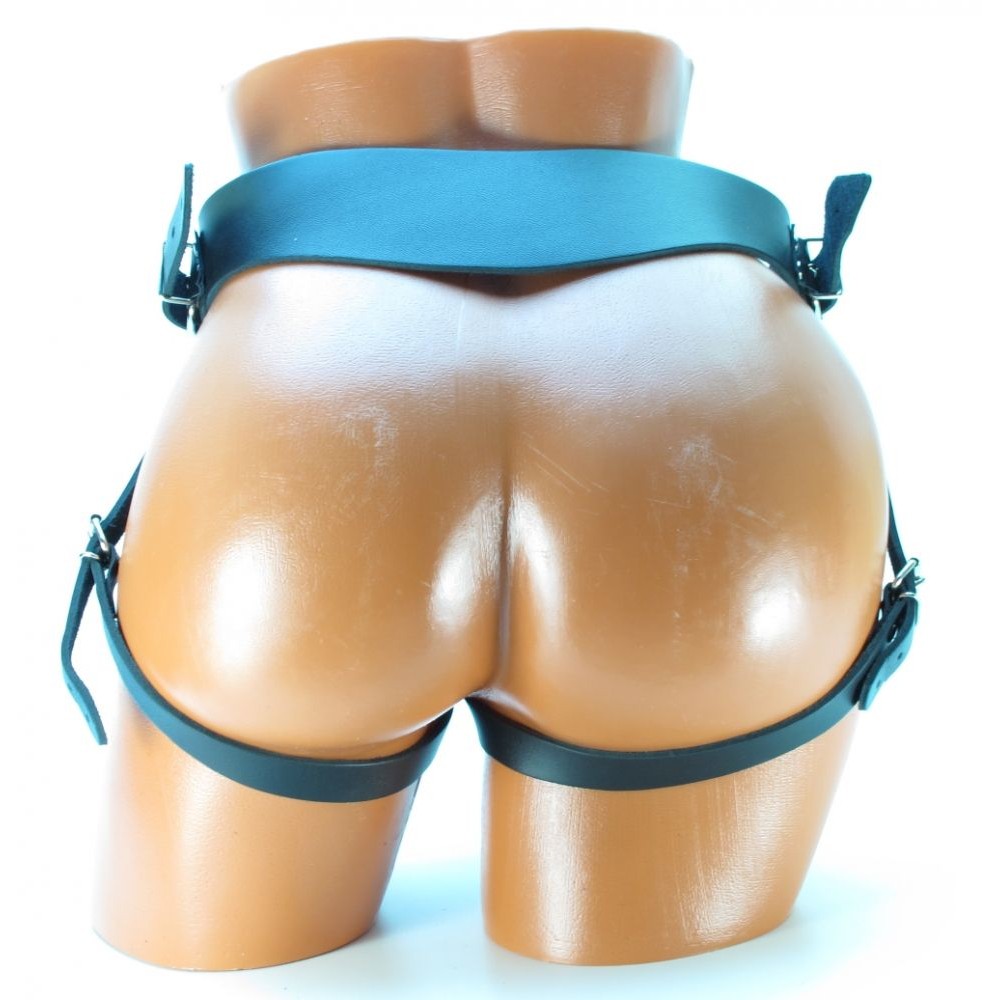 Черные кожаные трусики увеличенного размера для особо крупных насадок