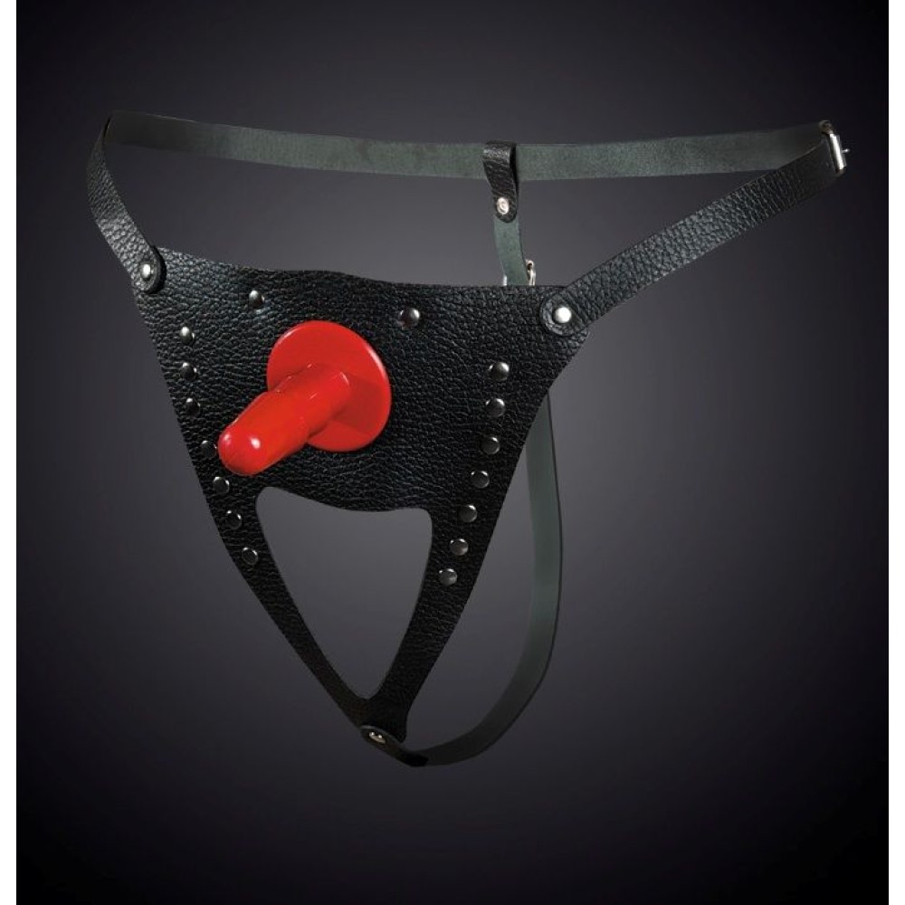 Технические характеристики Черные кожаные универсальные трусики со штырьком для насадок и вырезом