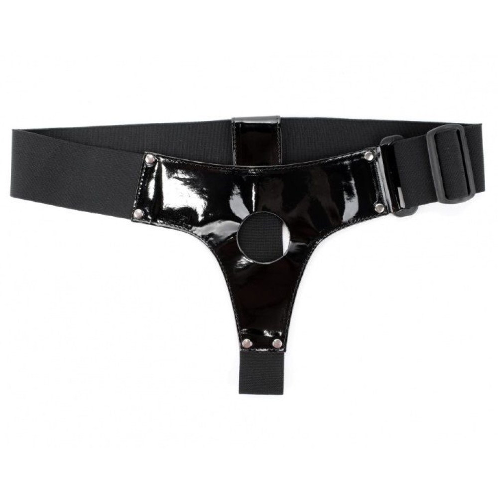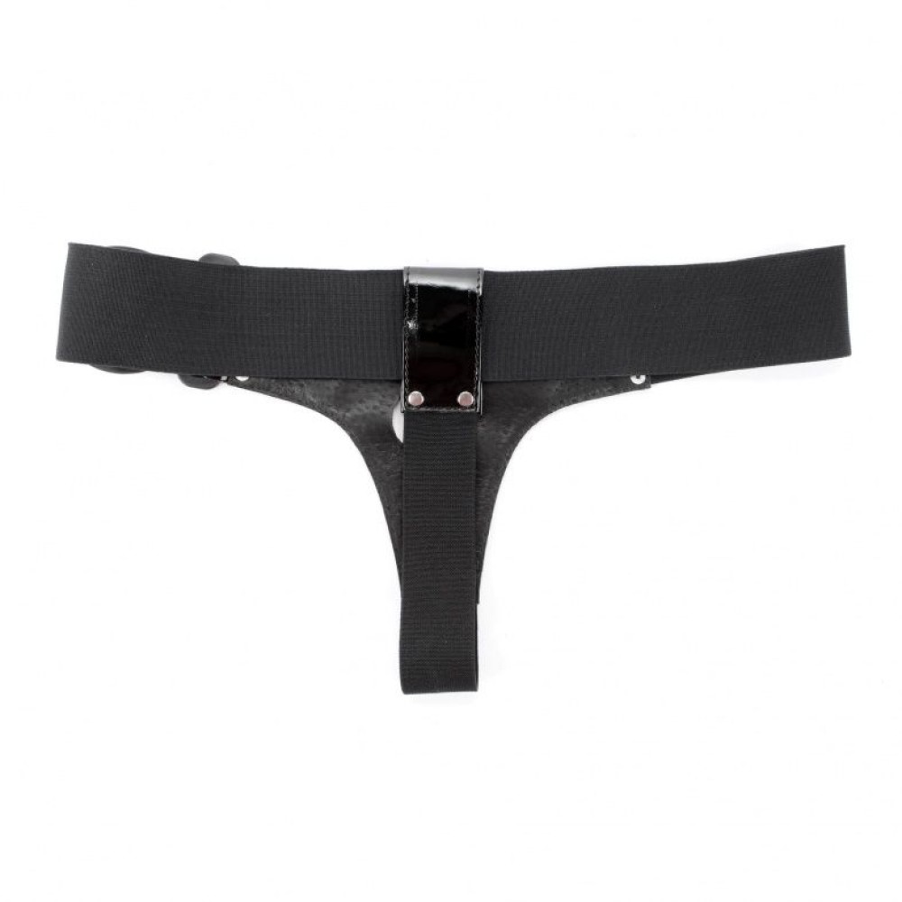 Чёрные латекcные трусики для страпона с дерзким блеском. Искусственная кожа российского производства плотно облегает тело, создавая комфортную основу для крепления страпона. Универсальная модель для партнёрских игр позволяет экспериментировать с ролями. Доставляется в защитном пакете без дополнительной упаковки.