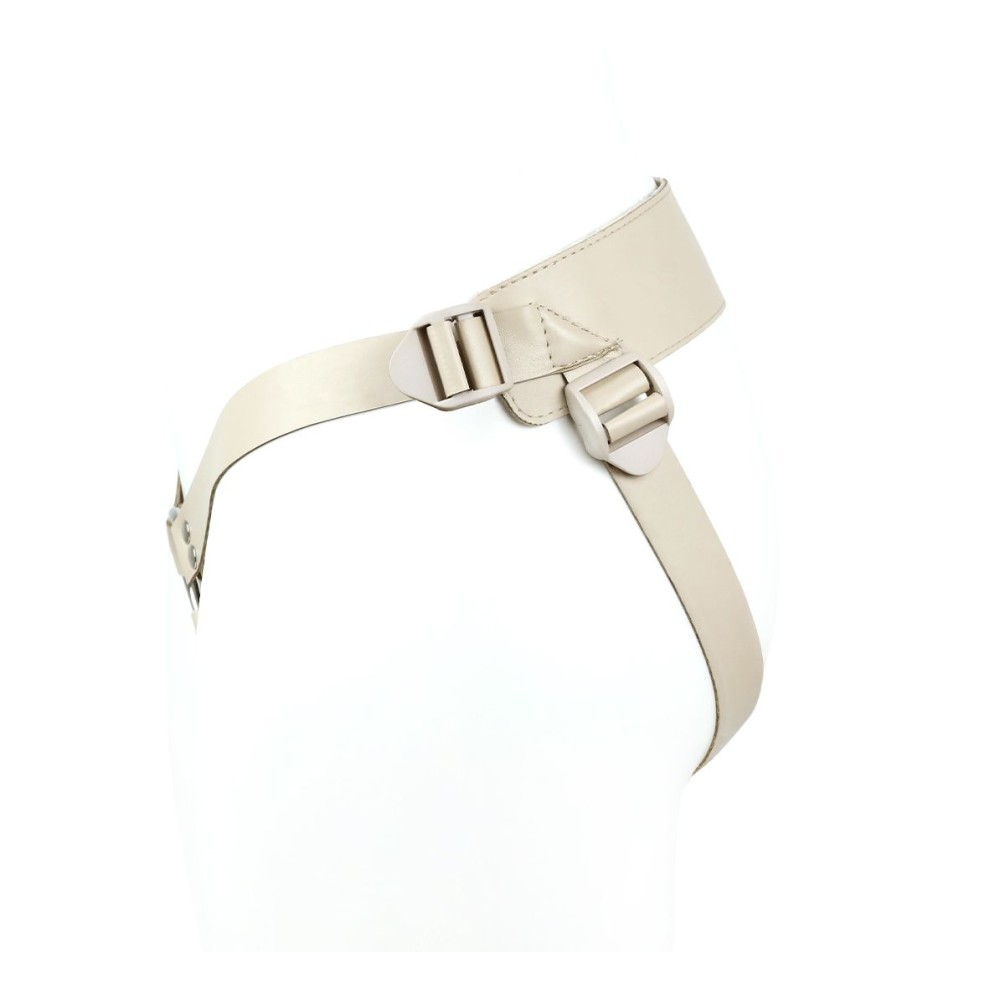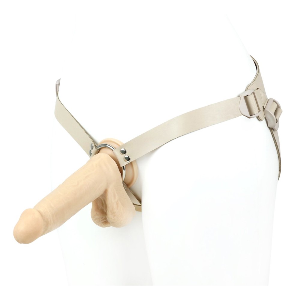 Поясной фаллоимитатор с мошонкой телесного цвета - 18 см.