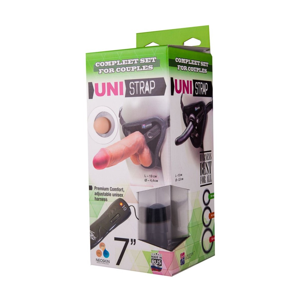 Страпон относится к коллекции HARNESS UNI STRAP, которая отличается универсальностью и удобством регулировки ремней для идеальной посадки. Упаковка — стильная картонная коробка, подходящая для хранения или в качестве подарка. Бренд и производство — Россия, что гарантирует контроль качества и доступность запчастей при необходимости.