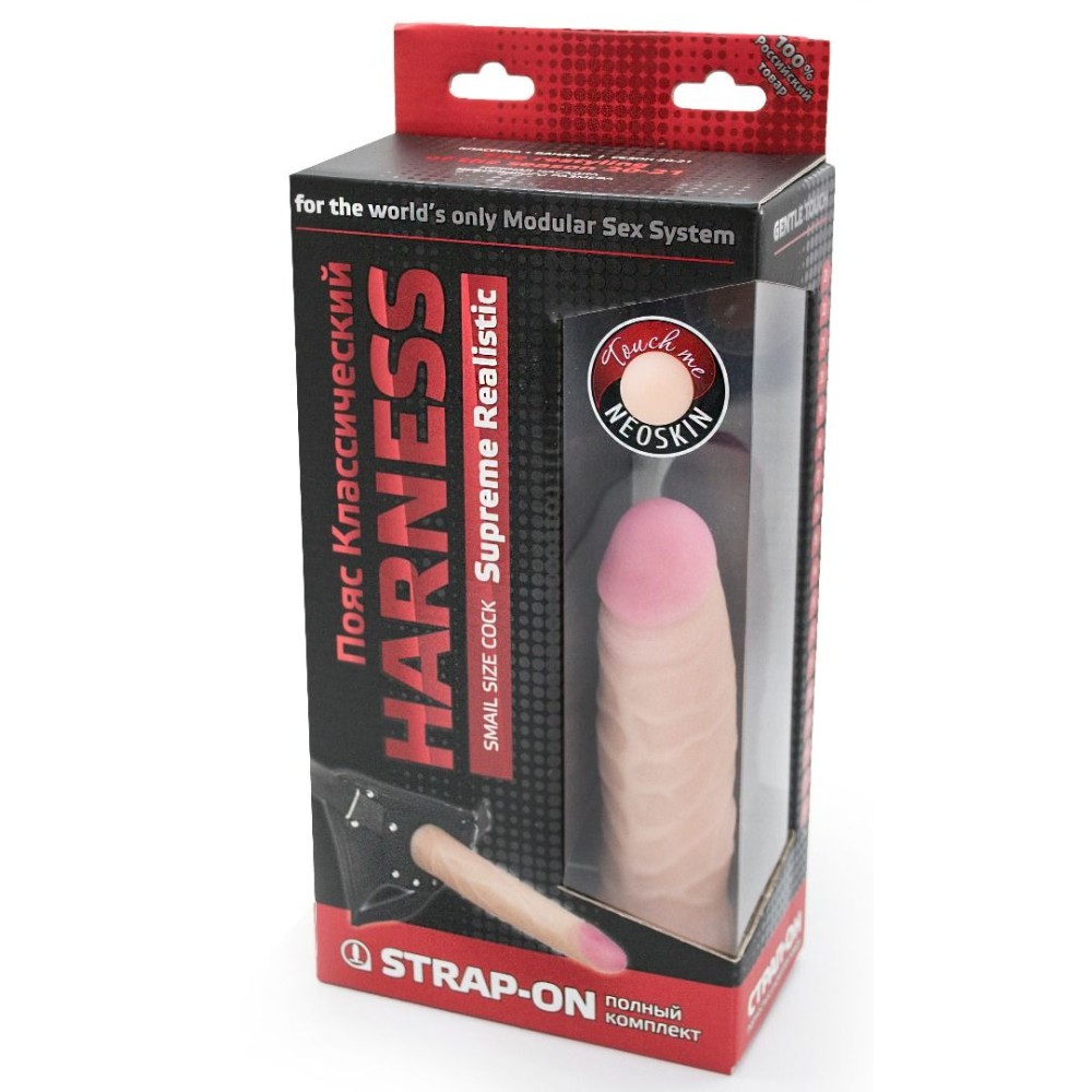 Страпон классической коллекции HARNESS с реалистичным дилдо 15,7 см. Регулируемые трусики телесного цвета подходят для любого телосложения. Неоскин обеспечивает тактильную натуральность, диаметр 4 см оптимален для комфортного проникновения. Фаллоприспособление предназначено для вагинальной стимуляции и парных практик. Российское производство в картонной упаковке гарантирует качество и доступность. Универсальная гендерная специфика делает игрушку идеальным решением для пар и соло-использования.
