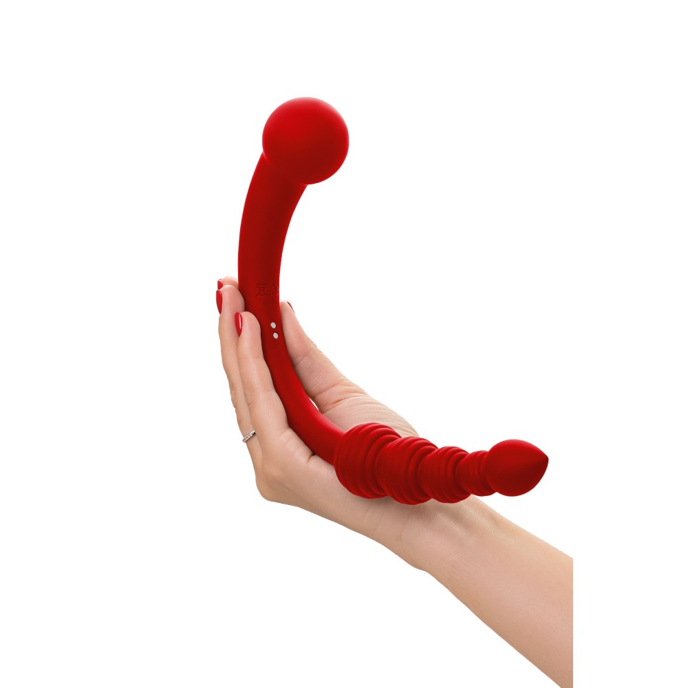 Двусторонний дизайн этого вибратора открывает новые горизонты интимных удовольствий! При длине 35 см и диаметре 4 см он идеально подходит для одновременной стимуляции различных эрогенных зон.