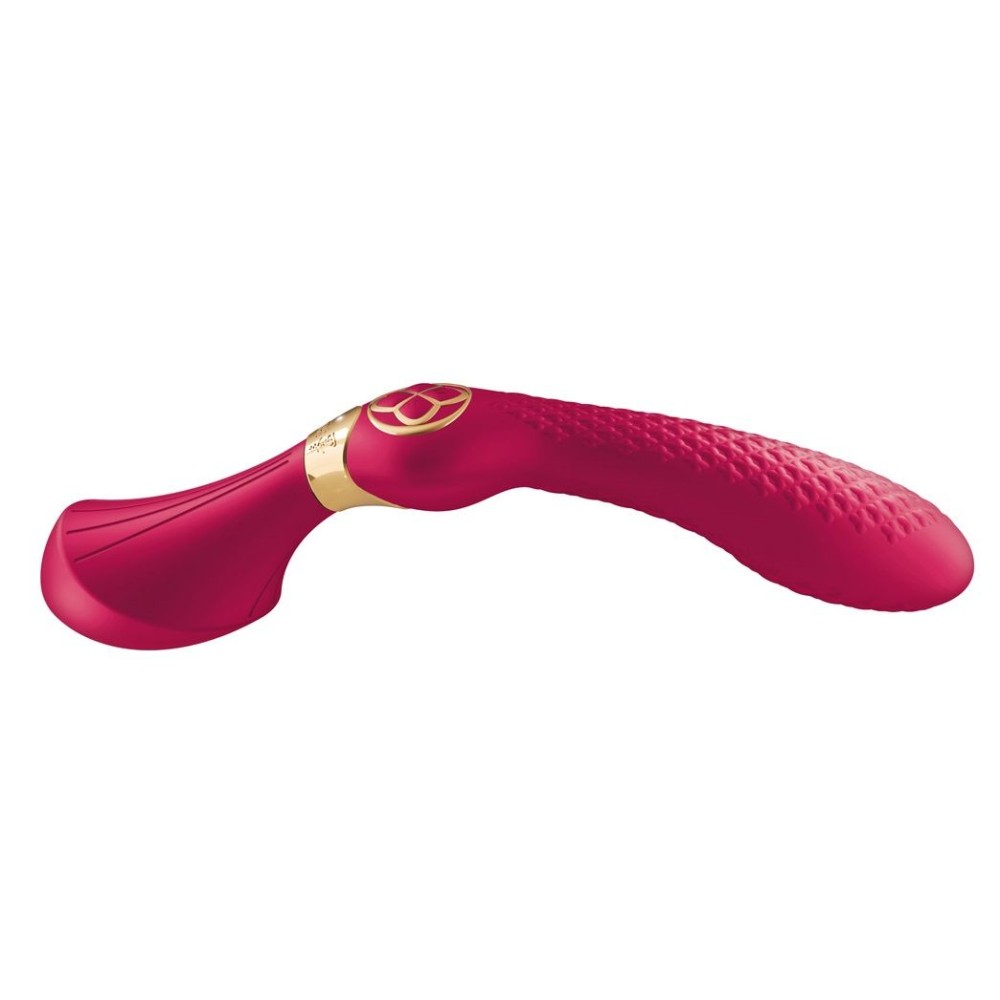 Малиновый двусторонний вибростимулятор ZOA - 26,5 см.