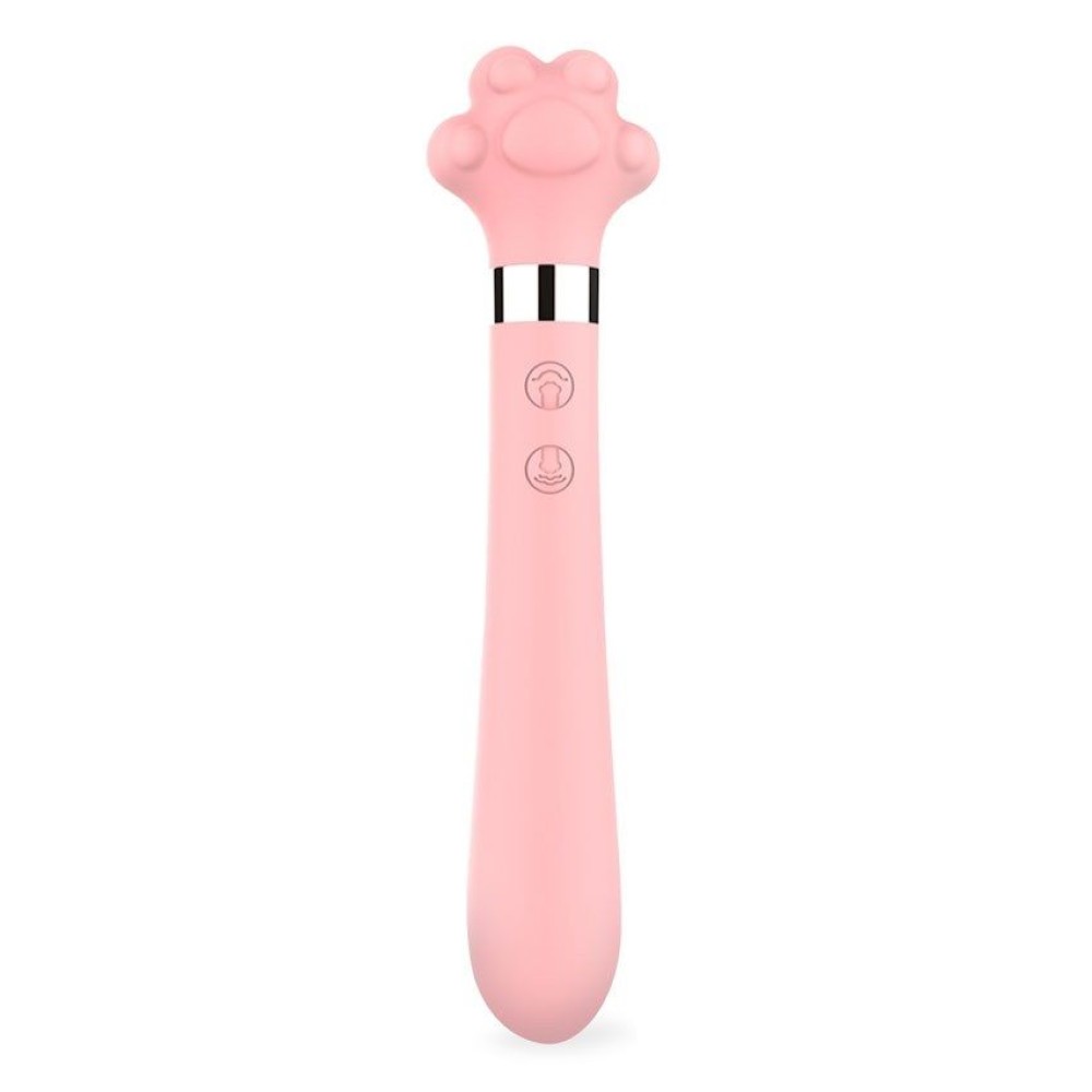 Розовый двусторонний вибромассажер Meow в форме лапки - 21 см.