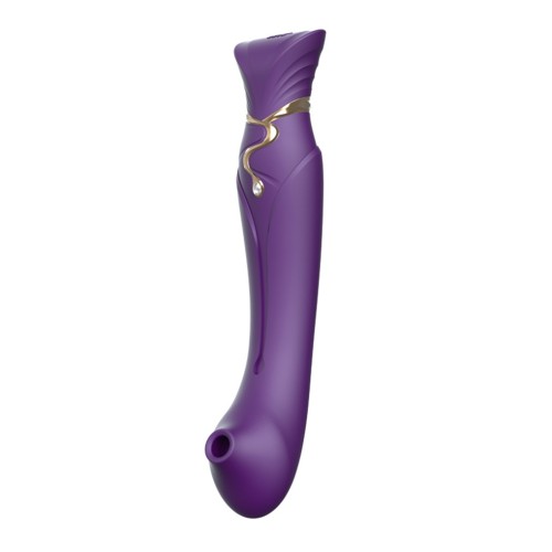 Фиолетовый вибромассажёр с дополнительной насадкой Queen - 21,6 см.