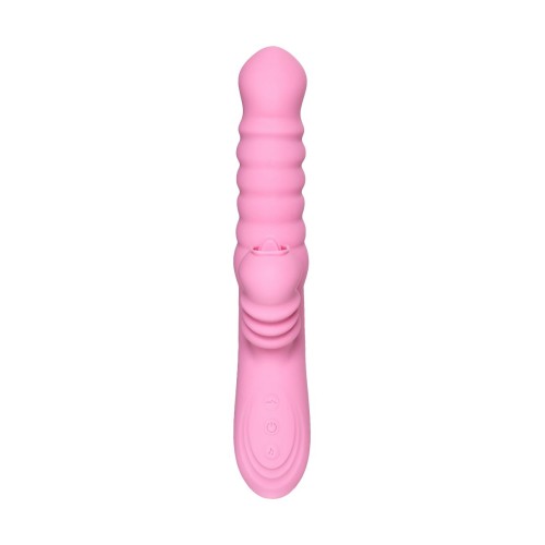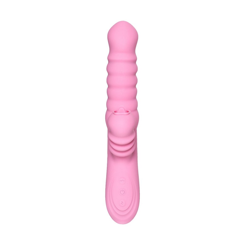 Розовый вибратор Lixy с возвратно-поступательным движением и нагревом - 23 см.