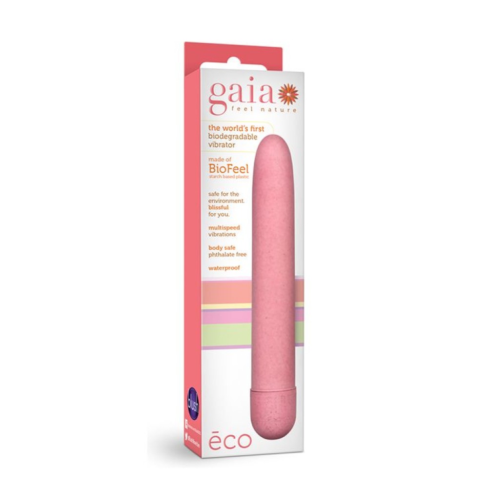 Gaia Eco - первый в мире биоразлагаемый и перерабатываемый вибратор! Eco производится из Biofeel - пластика на основе крахмала. Дизайн Eco является классическим и может использоваться для внутренней или внешней стимуляции: включая тонкий профиль и конический наконечник для комфорта. Благодаря тихим многоскоростным вибрациям легко найти свое идеальное ощущение. Эта игрушка безопасна для тела и легко чистится! Просто мыть теплым мылом и водой или любимым чистящим средством перед и после каждого использования. Рабочая длина - 14,6 см.
