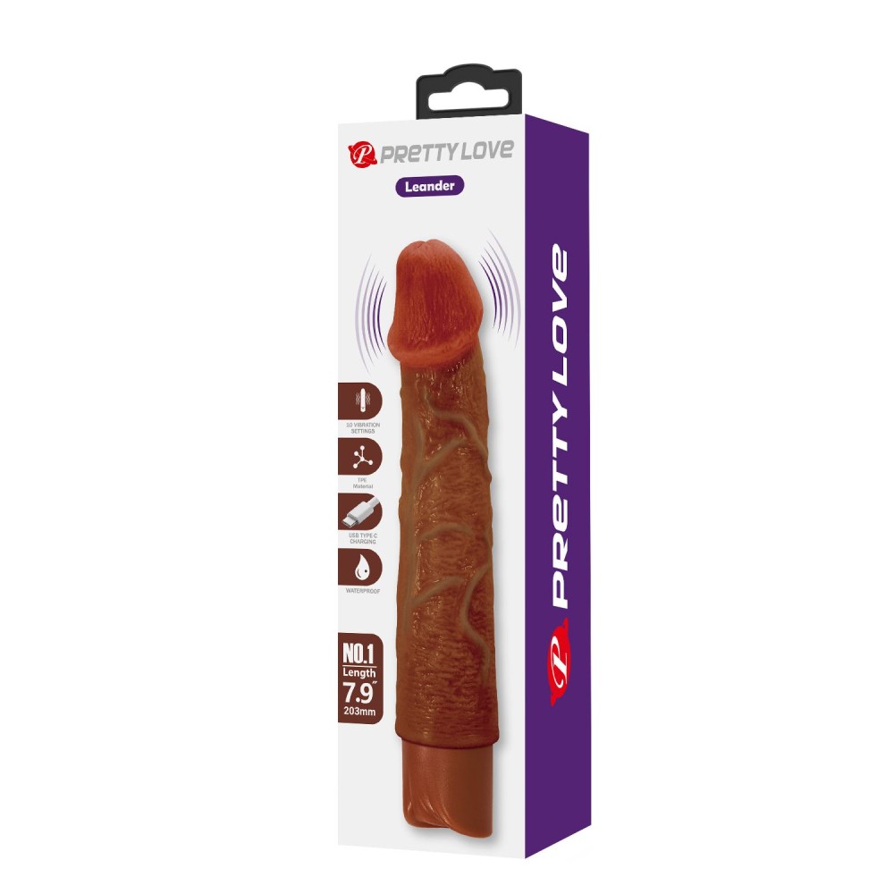 Технические характеристики Коричневый реалистичный вибратор Leander - 20,3 см.