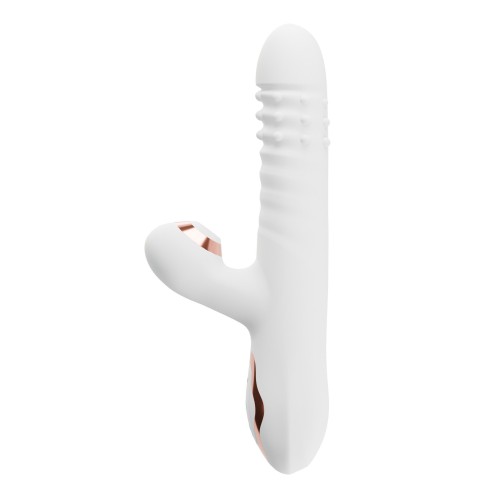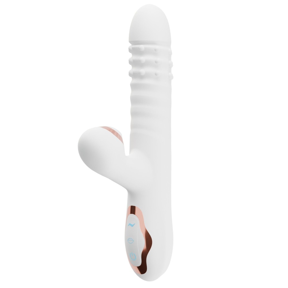 Белый вибратор-кролик с вращающимися шариками и вакуумной стимуляцией