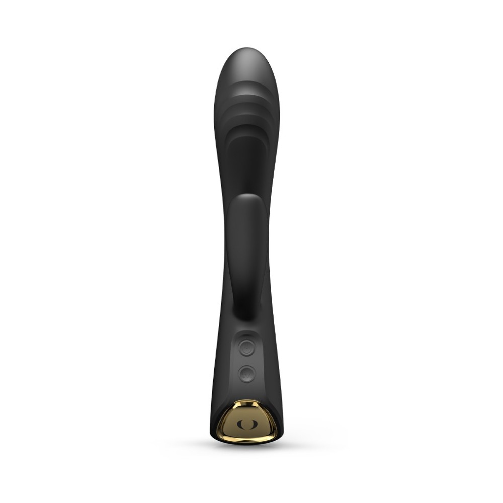 Товар имеет две кнопки. Верхнюю кнопку нужно нажать и удерживать, чтобы включить или выключить устройство (при включении на кнопке загорается голубой индикатор). Затем вы можете переключаться между 9 режимами вибрации в клиторальном отростке, кратковременно нажимая эту же кнопку. Нажмите нижнюю кнопку, чтобы включить вибрацию в вагинальном отростке, затем снова нажмите эту кнопку, чтобы переключиться между 9 режимами. Для включения функции подогрева необходимо зажать и удержать нижнюю кнопку, после чего она загорится красным индикатором, и игрушка будет постепенно нагреваться в области вагинального отростка до 40 градусов.