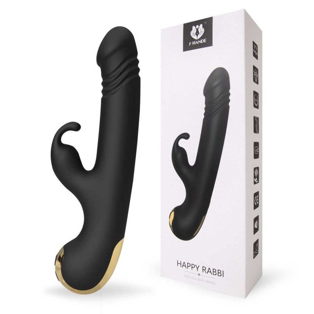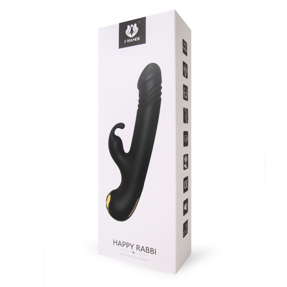 Черный вибромассажер-кролик Happy Rabbi — это инновационная силиконовая игрушка длиной 22,5 см и диаметром 3,5 см, созданная специально для женского удовольствия. Оснащен встроенным аккумулятором для удобства использования и мощной функцией вибрации. Уникальная конструкция обеспечивает двойную стимуляцию: вагинальную и целенаправленную стимуляцию клитора для максимально интенсивных ощущений. Выполнен из безопасного силикона, поставляется в картонной коробке. Бренд и производство — Китай.
