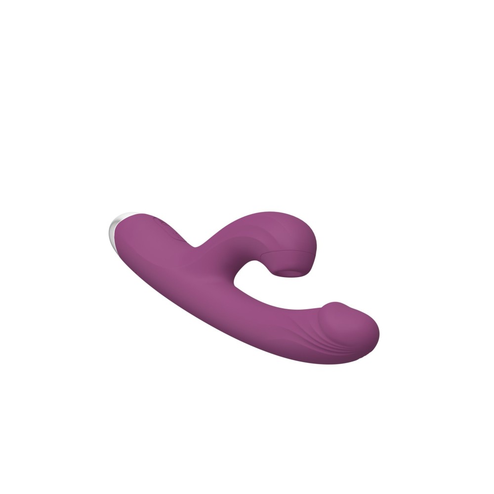 Ключевая особенность — вакуумный клиторальный отросток, который создает пульсирующие ощущения для интенсивного возбуждения. Одновременно основная часть вибратора обеспечивает мощную вагинальную стимуляцию. Встроенный аккумулятор исключает необходимость в батарейках, а функция вибрации настраивается под ваши предпочтения.