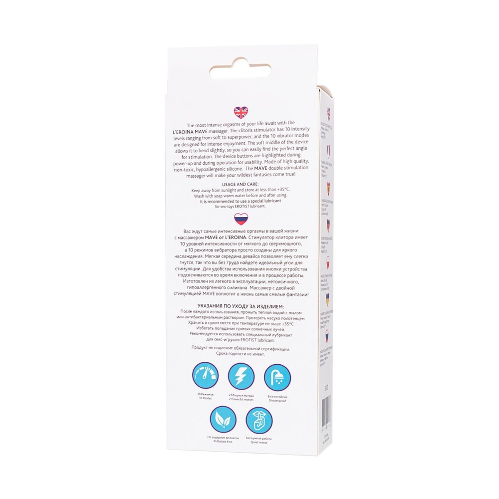 Идеально подходит для самостоятельного использования или парных игр. Картонная упаковка обеспечивает discreet хранение и транспортировку. Погрузитесь в мир наслаждения с этим стильным и функциональным массажером!