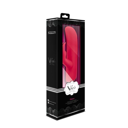Красный перезаряжаемый вибромассажёр VILAIN BIANCA BERRY. 7 режимов вибрации. С клиторальным зайчиком для дополнительной стимуляции. Рабочая длина - 10,1 см.