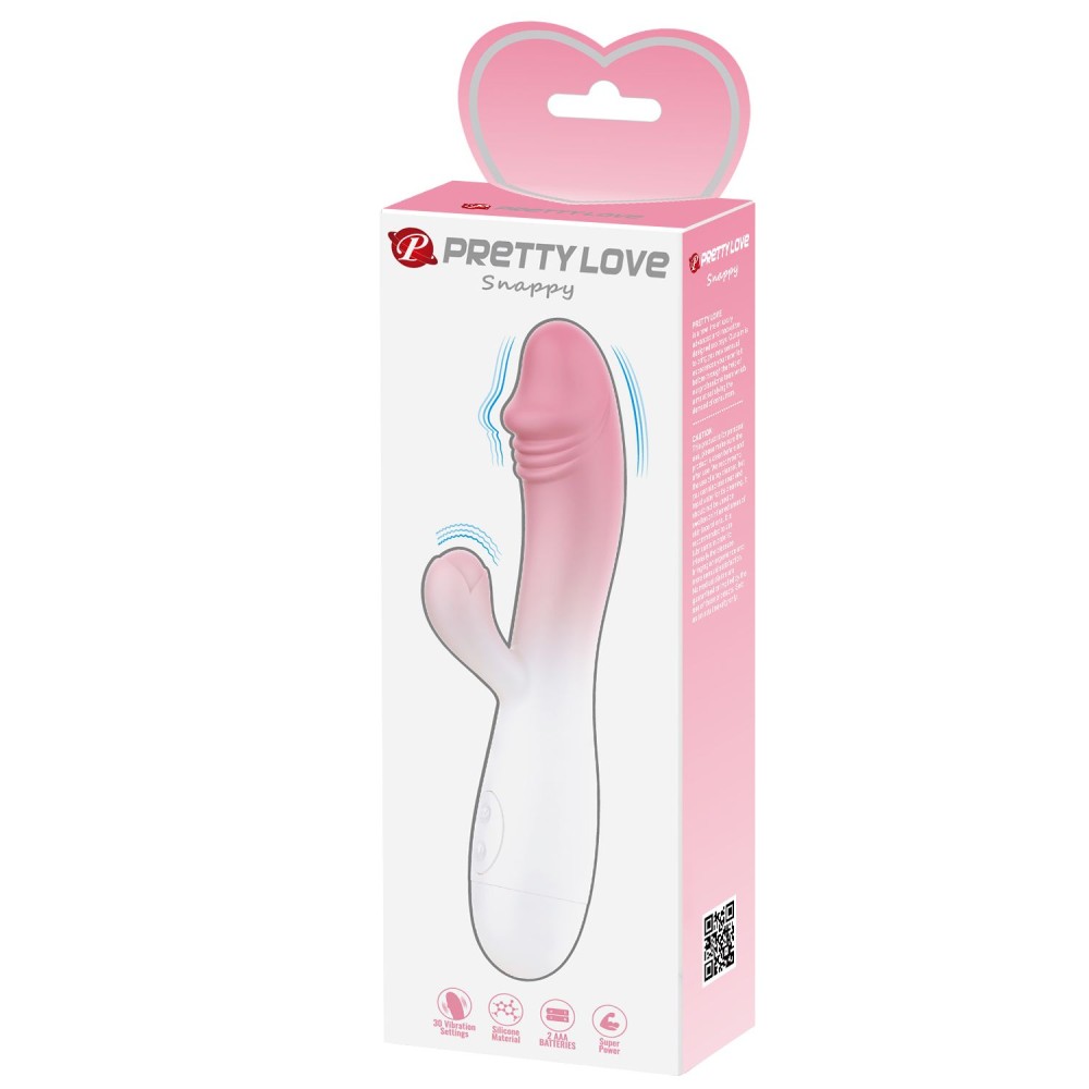 Розово-белый вибромассажёр-кролик Snappy - идеальный спутник для незабываемых моментов удовольствия! Стильный дизайн в нежных тонах сочетает эстетику и функциональность.