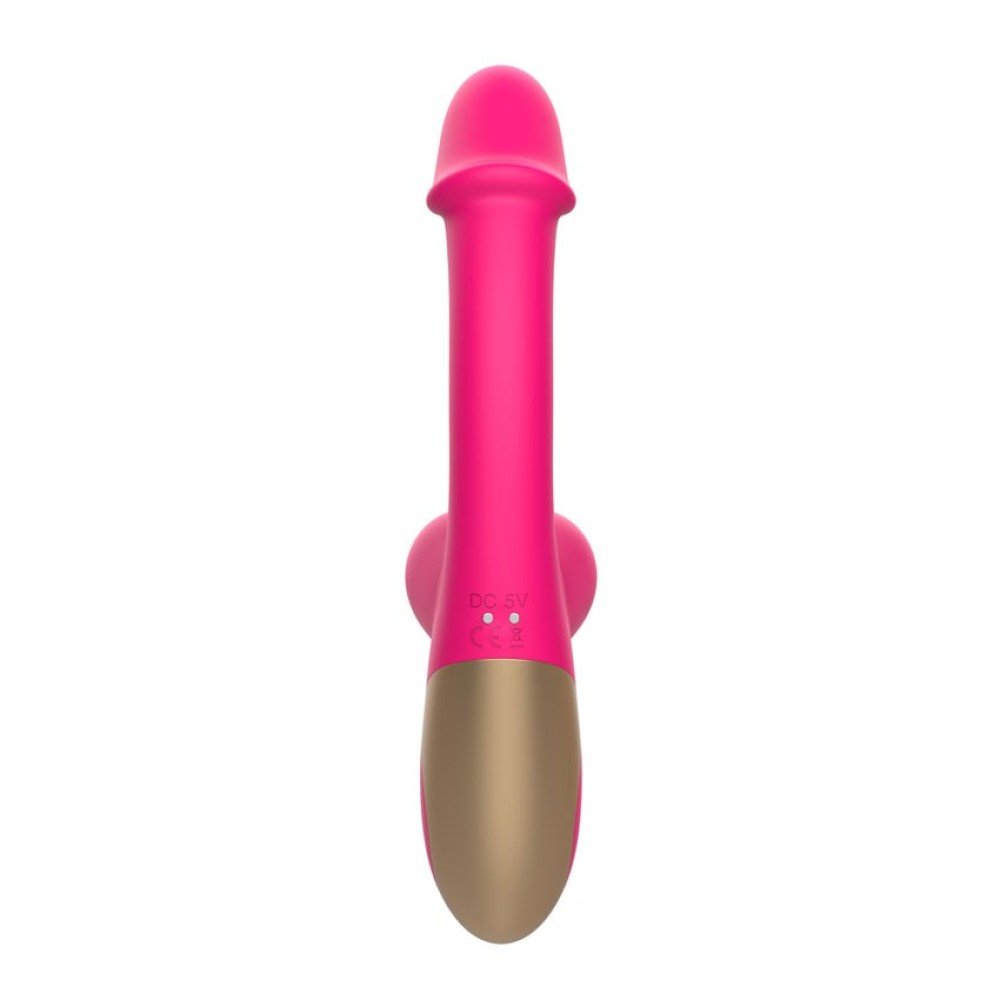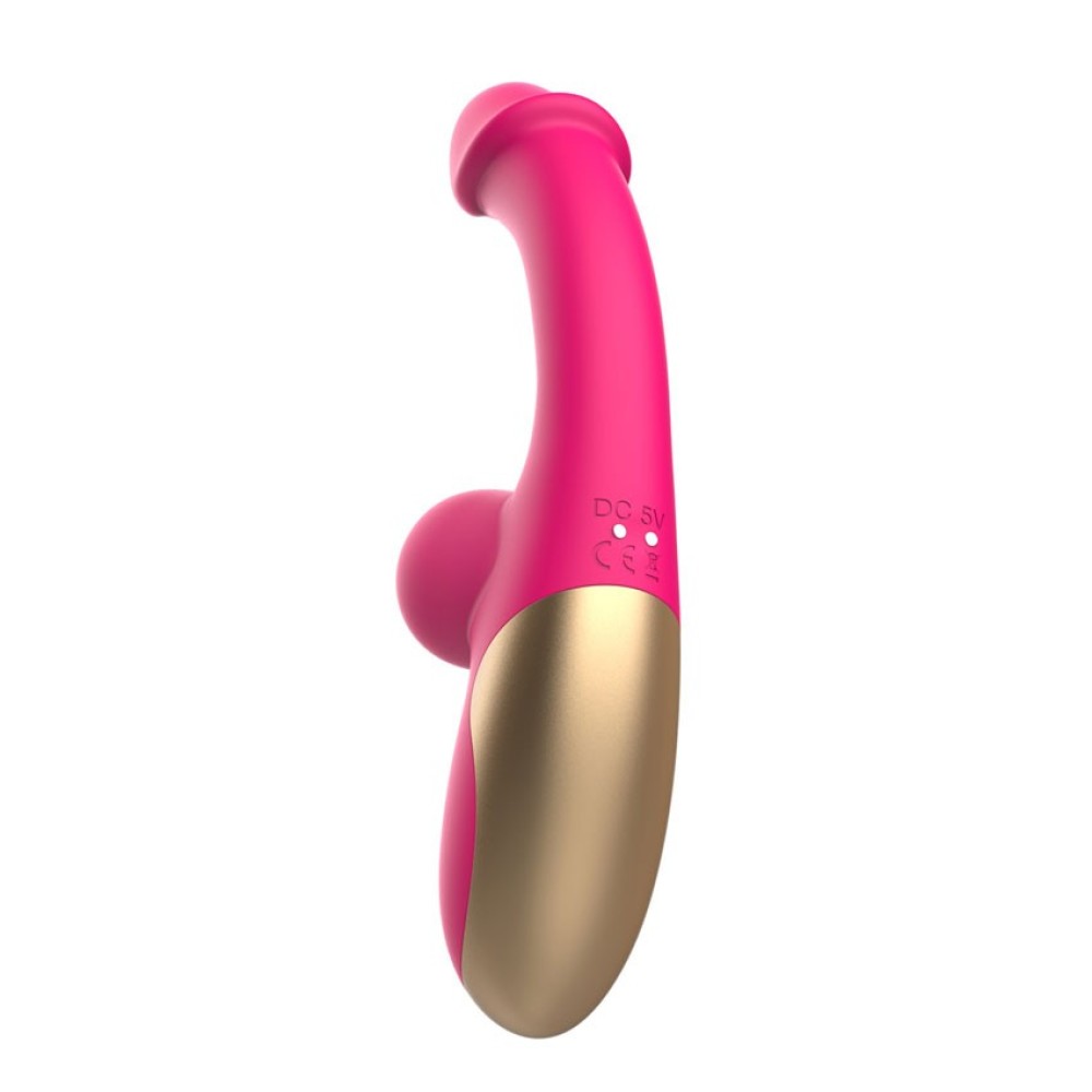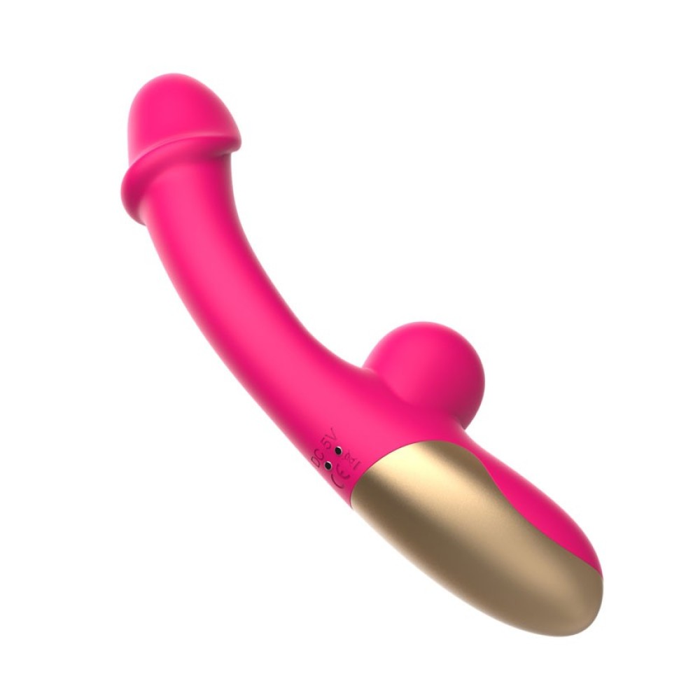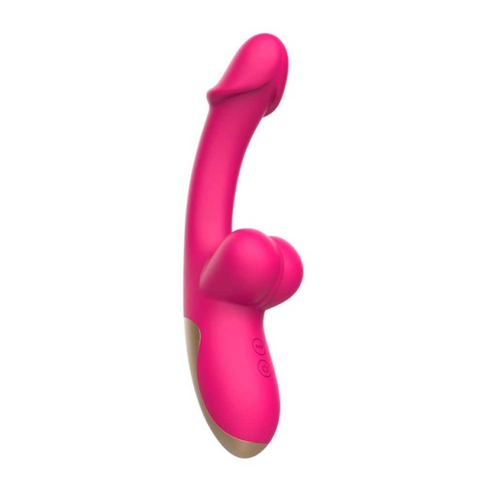 Розовый изогнутый вибромассажёр с имитацией мошонки - идеальный спутник для незабываемых моментов наслаждения! Стильный дизайн и продуманная форма созданы для максимального комфорта и эффективной стимуляции.