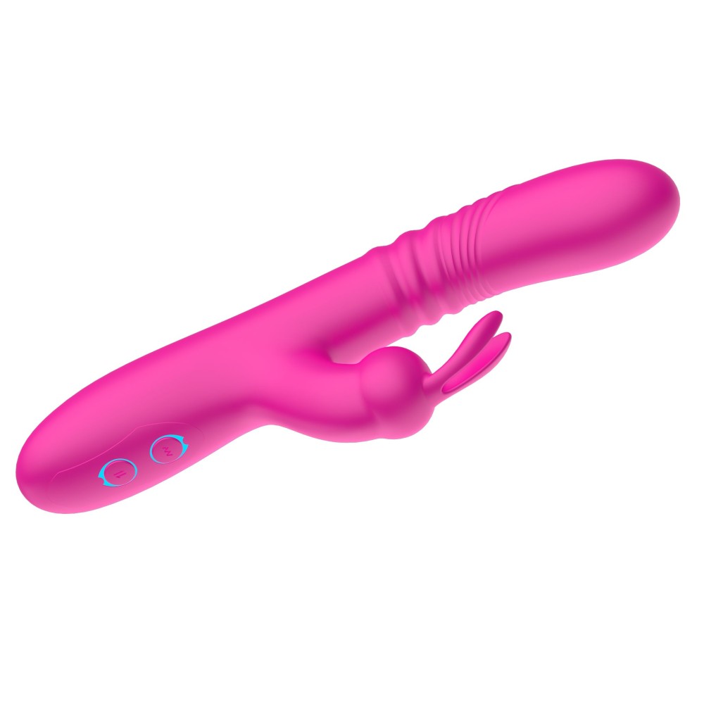 Ключевая особенность — функция поступательных движений, имитирующая реалистичные толчки, и дополнительная стимуляция клитора с помощью вибрации ушек кролика. Это позволяет одновременно воздействовать на G-зону и эрогенные точки, усиливая оргазм. Встроенный аккумулятор избавляет от необходимости замены батареек, обеспечивая долгую работу без перерыва.